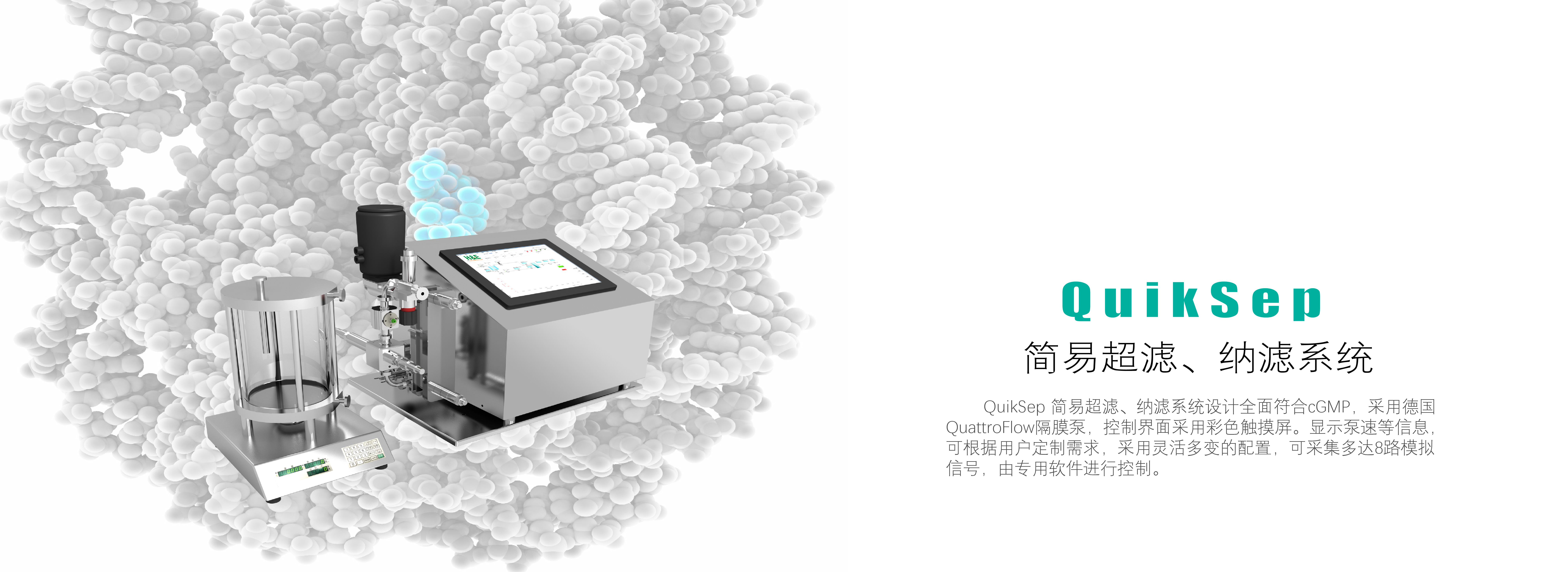 QuikSep蠕動泵超濾系統(tǒng)是采用衛(wèi)生級蠕動泵單泵作為循環(huán)輸液單元,在泵后、膜包濾過端和回流端分別配壓力傳感器,配合回流端的比例調節(jié)閥實現(xiàn)恒定跨膜壓TMP
