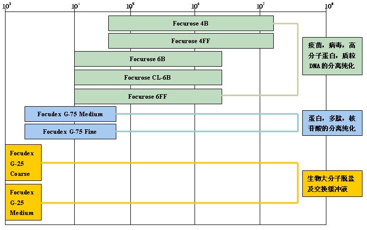 凝膠過濾介質(zhì)分級(jí)分離范圍(球蛋白Da)
