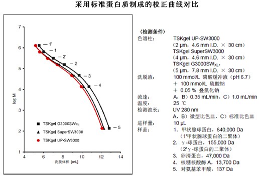 1.?對標準蛋白質的分離(與現(xiàn)有產品SW系列色譜柱的比較)