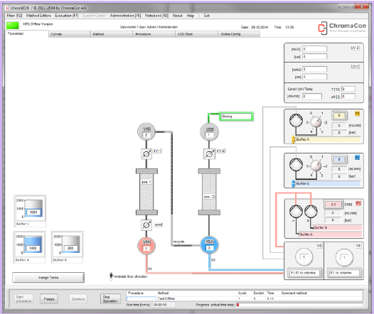 所有的Contichrom系統(tǒng)均具有完整的層析工藝運(yùn)行能力,支持多種洗脫模式,ChromIQ軟件可以提供純化向?qū)Чδ埽灾С峙a(chǎn)工藝的設(shè)計(jì)和執(zhí)行。