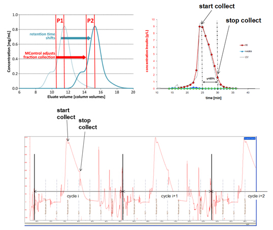 ? 通過MCSGP的子模塊M-Control,可有效克服由于溫度、柱效等因素造成的出峰時間遷移,實現(xiàn)智能收集,保證各cycle的工藝可控性和可重復(fù)性。