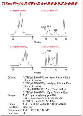 2. 使用柱效更高的PWxl型柱去實(shí)現(xiàn)最佳分辨率,從而縮短分析時(shí)間,或在樣品量受限的情況中分析樣品。