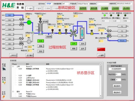 QuikSep Prep全自動層析系統(tǒng)軟件符合新版GMP規(guī)范,采用圖形化界面、全自動操作,簡明扼要,任何操作及狀態(tài)均可實時顯示在主界面狀態(tài)欄中,自動化程度高。結(jié)合了大量的容錯性設(shè)計,貼合生產(chǎn)實際,降低了對操作人員的技能要求。參考圖: