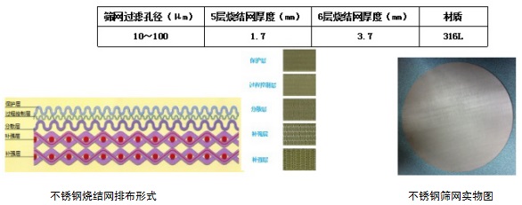 上下篩網(wǎng)為多層結(jié)構(gòu)的不銹鋼燒結(jié)網(wǎng)。 與聚乙烯篩網(wǎng)不同:聚乙烯篩網(wǎng)為疏水性質(zhì),需要在裝柱前充分潤(rùn)濕,而不銹鋼篩網(wǎng)則不需要提前潤(rùn)濕。不銹鋼燒結(jié)網(wǎng)由保護(hù)層、過(guò)程控制層、分散層及2~3層補(bǔ)強(qiáng)層燒結(jié)而成。